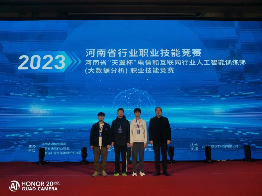 11月25日,2023年河南省行业职业技能竞赛—河南省“天翼杯”电信和互联网行业人工智能训练师(大数据分析)职业技能竞赛在郑州圆满落幕。公司2026世界杯预测楚书来、冯腾霄两位老师指导,孙梦杰、李豪宇、李金普三名同学组队参赛,比赛中同学们沉重稳重,发挥出应用水平,最后经过三个小时的多轮比拼,以637分的成绩稳居榜首,取得职教组金奖,这也是公司在该赛项上的最好成绩。