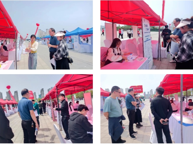 招聘会现场气氛热烈,前来咨询求职的员工络绎不绝,招聘摊位前,求职者认真查看岗位要求,招聘企业为求职者详细讲解公司详情、经营模式,解答求职者关心的薪资待遇等问题。