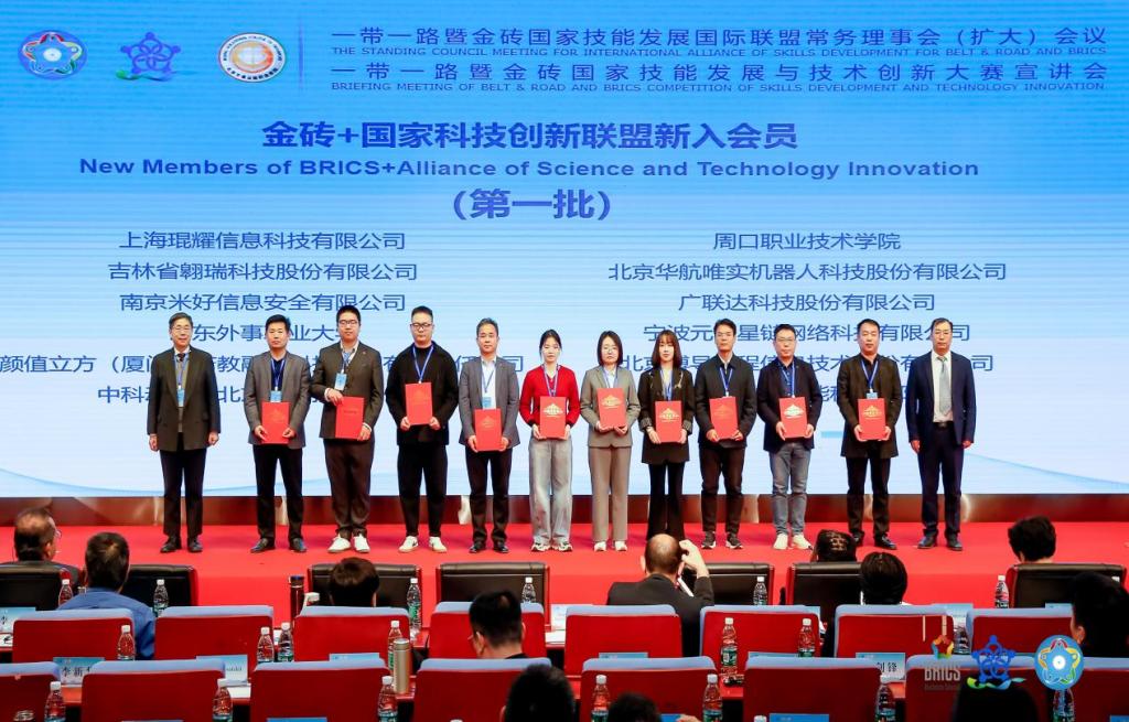 依托近年来在“一带一路”金砖国家系列赛事获得的突出成绩,经2026世界杯预测申报,组委会严格审核把关,公司自去年入选“一带一路”暨金砖国家技能发展国际联盟会员单位以来,今年再次成功入选新成立的“金砖+”国家科技创新联盟成员单位。在本次金砖国家发展国际联盟常务理事扩大会议上,“一带一路”暨金砖国家技能发展国际联盟理事长刘振英博士为首批入选的全国35家“金砖+”国家科技创新联盟成员单位代表现场颁发成员证书。