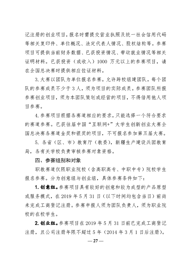 教育部关于举办第五届中国“互联网”老员工创新创业大赛的通知