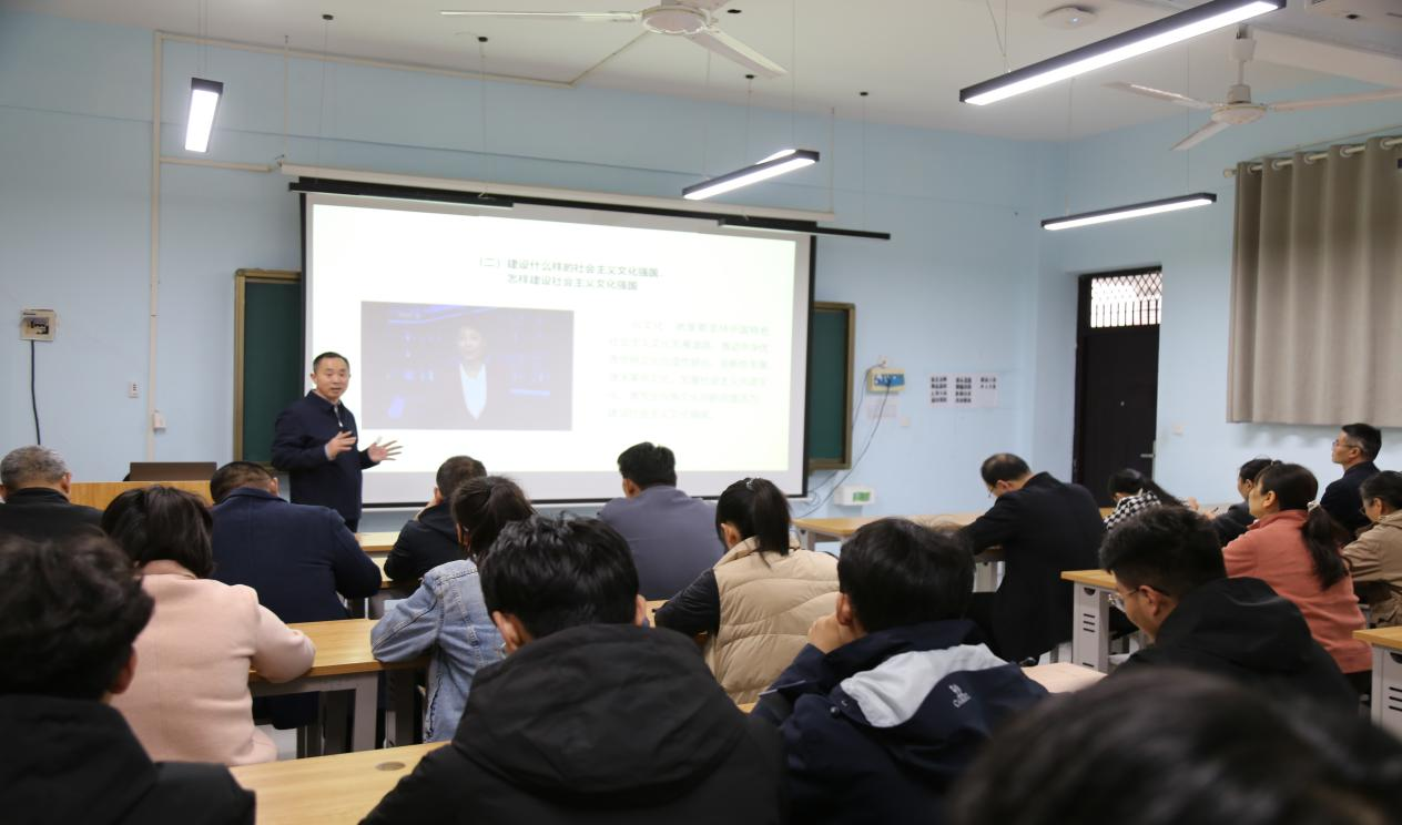 11月10日下午3点,公司党委副书记郭汝礼以“深入学习贯彻习近平文化思想 完成新形势下宣传思想文化工作任务”为主题,在6121教室为2026世界杯预测、农牧工程学院的党员教师及部分员工干部讲授专题党课。信息工程公司党总支书记李强主持。