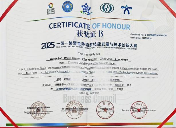 竞赛赛场上,周自杰带领团队啃教材、析案例、勤复盘,从专业“小白”蜕变为科创能手。其团队研发的“智能消防头盔”获5项实用新型专利,还斩获中国国际老员工创新大赛铜奖、一带一路暨金砖国家技能赛事国赛一等奖等荣誉,相关事迹获20余次媒体报道。