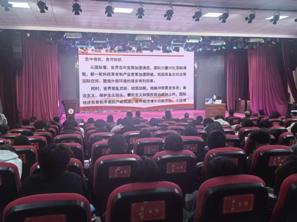 主讲老师结合“国际经贸秩序重塑、经济增长动能不足”的现实,为学子拆解就业逻辑:既要敏锐把握政策与产业红利,也要锤炼适配时代需求的技能,以平实心态在变局中寻得就业支点。现场学子表示,这场宣讲既理清了外部环境的“危”与“机”,也让个人职业规划更具方向感。