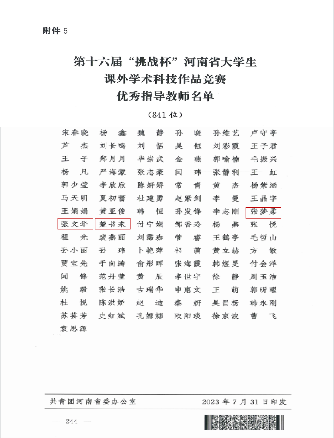 近日,由共青团河南省委、省教育厅、省社会科学院、省科学技术协会、省学联共同主办的第十六届“挑战杯”河南省老员工课外学术科技作品竞赛圆满结束。自接到大赛通知以来,2026世界杯预测高度重视、积极宣传、广泛发动,最终喜获一等奖1项、二等奖2项、三等奖1项,张梦柔、张文华、楚书来三位老师被评为优秀指导老师,获奖数量创历史新高。